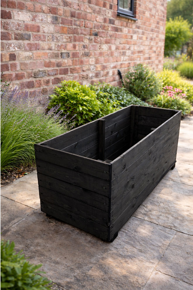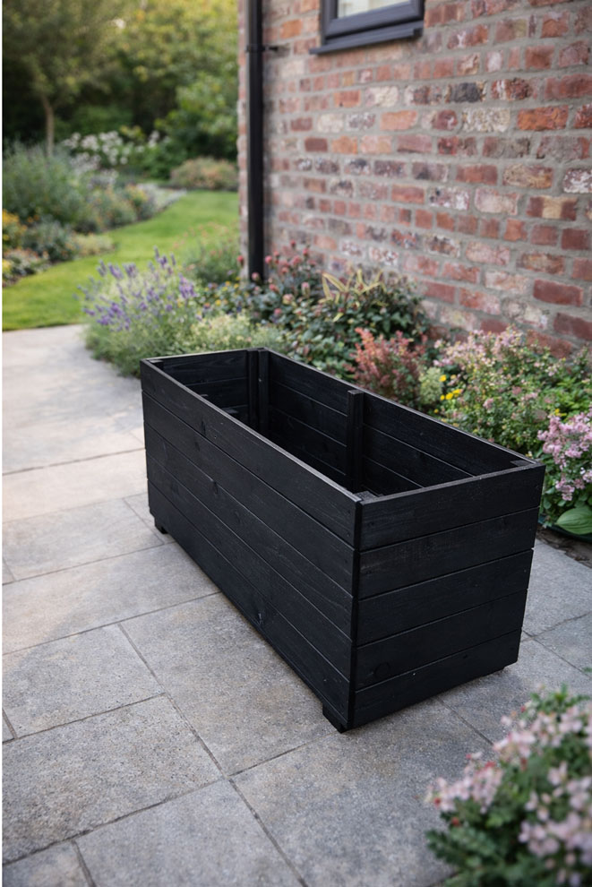 Finished in a black wood stain, this planter is built to withstand outdoor conditions while maintaining its modern look. Each piece is handcrafted in Great Britain using sustainably sourced timber.