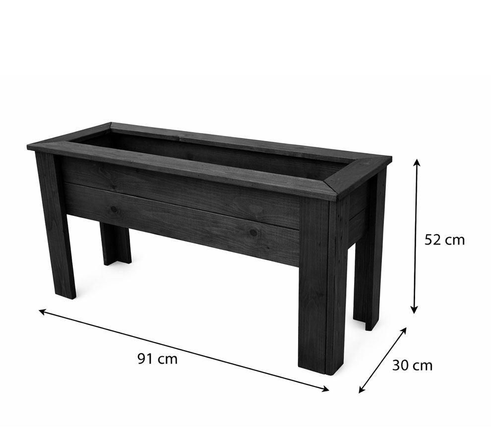 This fully assembled raised planter arrives ready to use, allowing you to plant straight out of the box with no assembly required, an ideal raised garden bed for easy, stress-free gardening. Raised on sturdy legs, this elevated planter box provides a comfortable working height that reduces bending and kneeling, making it perfect for elderly gardeners or anyone wanting easier access. Its narrow, space-saving design makes it an excellent balcony planter, patio planter, or small garden planter, while offering generous space for herbs, vegetables, and flowers in a practical herb planter layout. Made in the UK from durable 18 mm planed timber with strong 35 mm end boards, its finished with a black Wood-Shield stain for lasting weather protection and helps keep plants safe from pets and ground-level pests. (Plants shown are for illustration purposes only and are not included.)