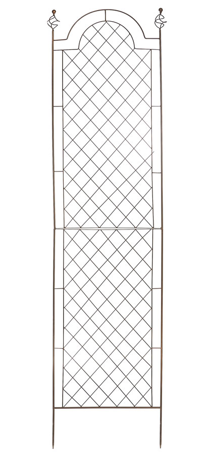 This extra tall and extra width lattice design garden wall trellis with feature finial spirals is a quick and instant way to create height for flowering plants and aid good growth, by adding this trellis structure will create interest around the garden and patio areas. Constructed from metal as a two-frame section support and coated with a rust effect finish, which offers a vintage timeless finish and offers protect against corrosion and weathering. Extra tall 2m high and extra wide 0.5m, this trellis is suitable for the large stemmed climbing plants and roses.