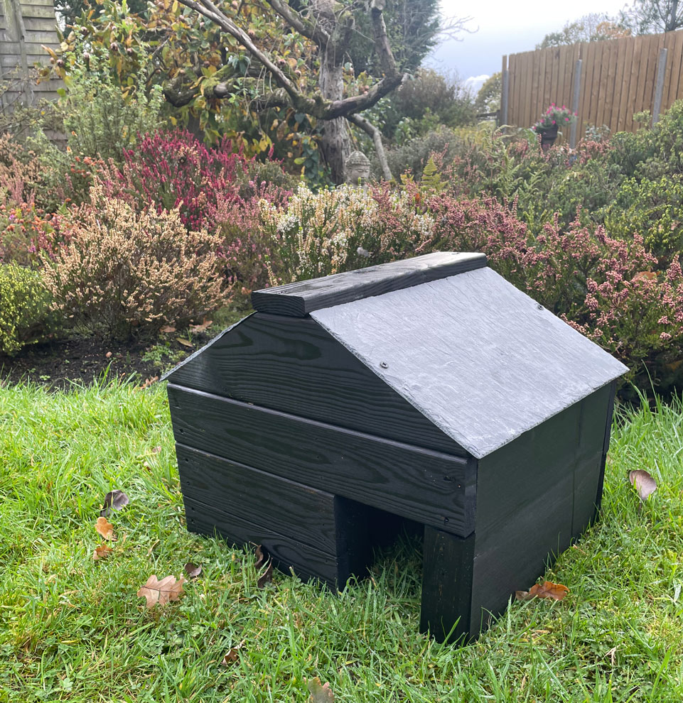 Hedgehog home is constructed with a real slate roof, adding durability and an elegant touch to its handmade, heavy-duty wood modern design.