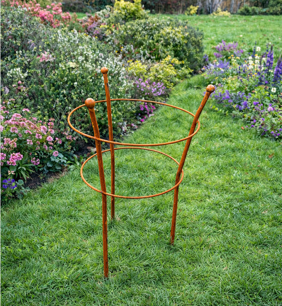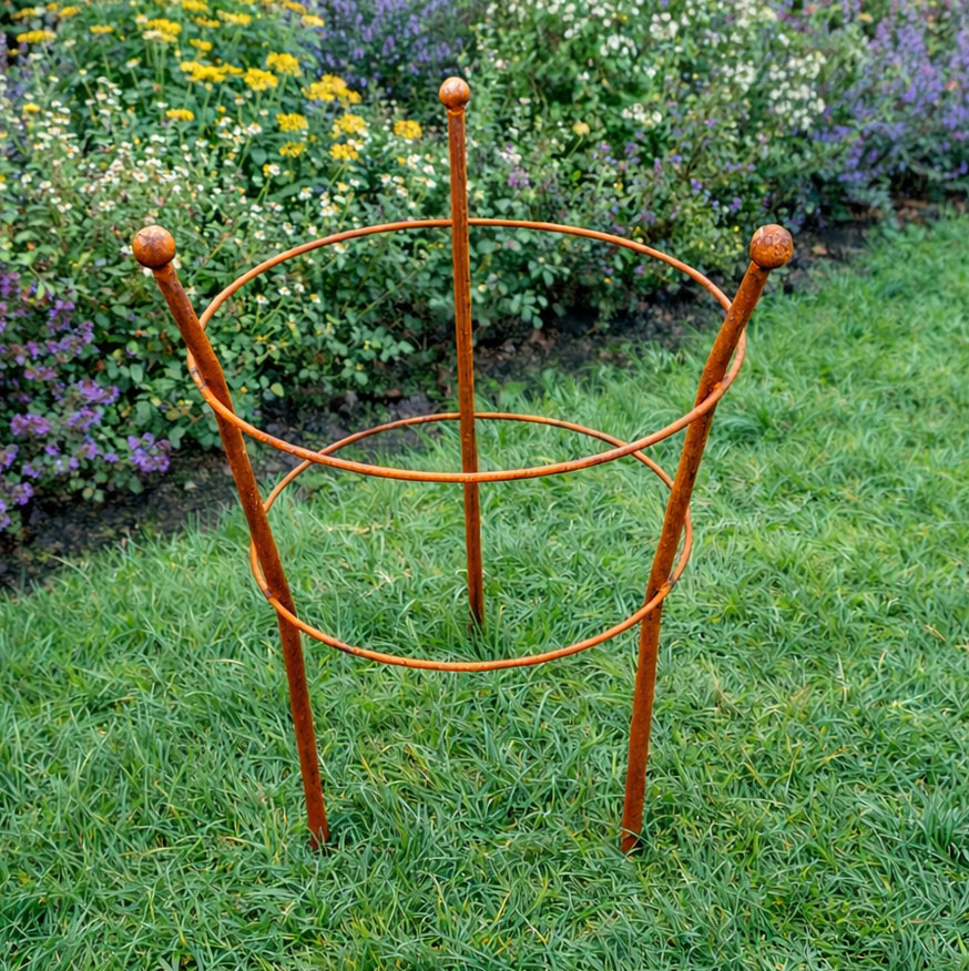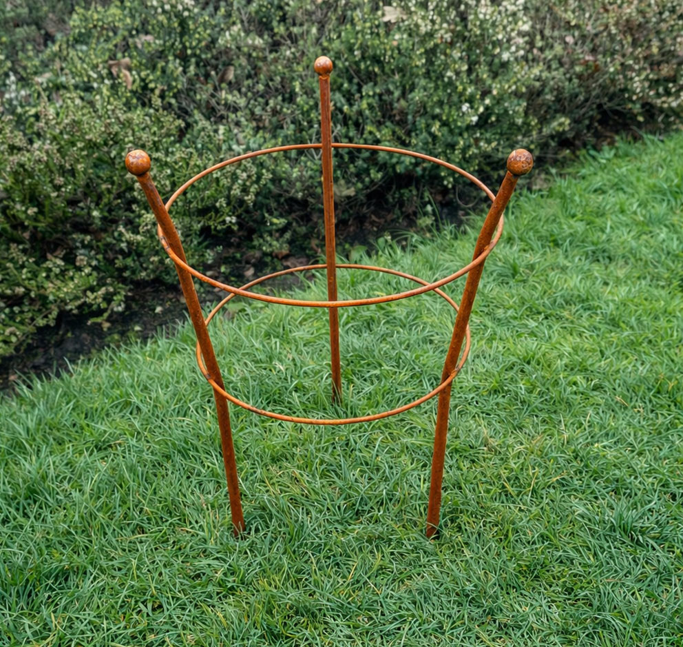 This round flower support frame is designed to provide reliable structure and stability for plants as they grow, while blending naturally into any garden setting. Made from durable, high-quality metal using 7 mm solid rod, this metal garden plant support is intentionally left unfinished so it can gradually develop a natural patina once exposed to outdoor conditions. Ideal for supporting a variety of blooms and taller stems, this plant support ring helps keep plants upright, neat, and protected throughout the growing season. Featuring a simple circular frame with decorative ball finials, this decorative plant support adds a subtle country-garden style to borders and flower beds. Strong and practical, the garden plant support ring can be easily inserted into the soil and left in place to provide dependable support all year round.